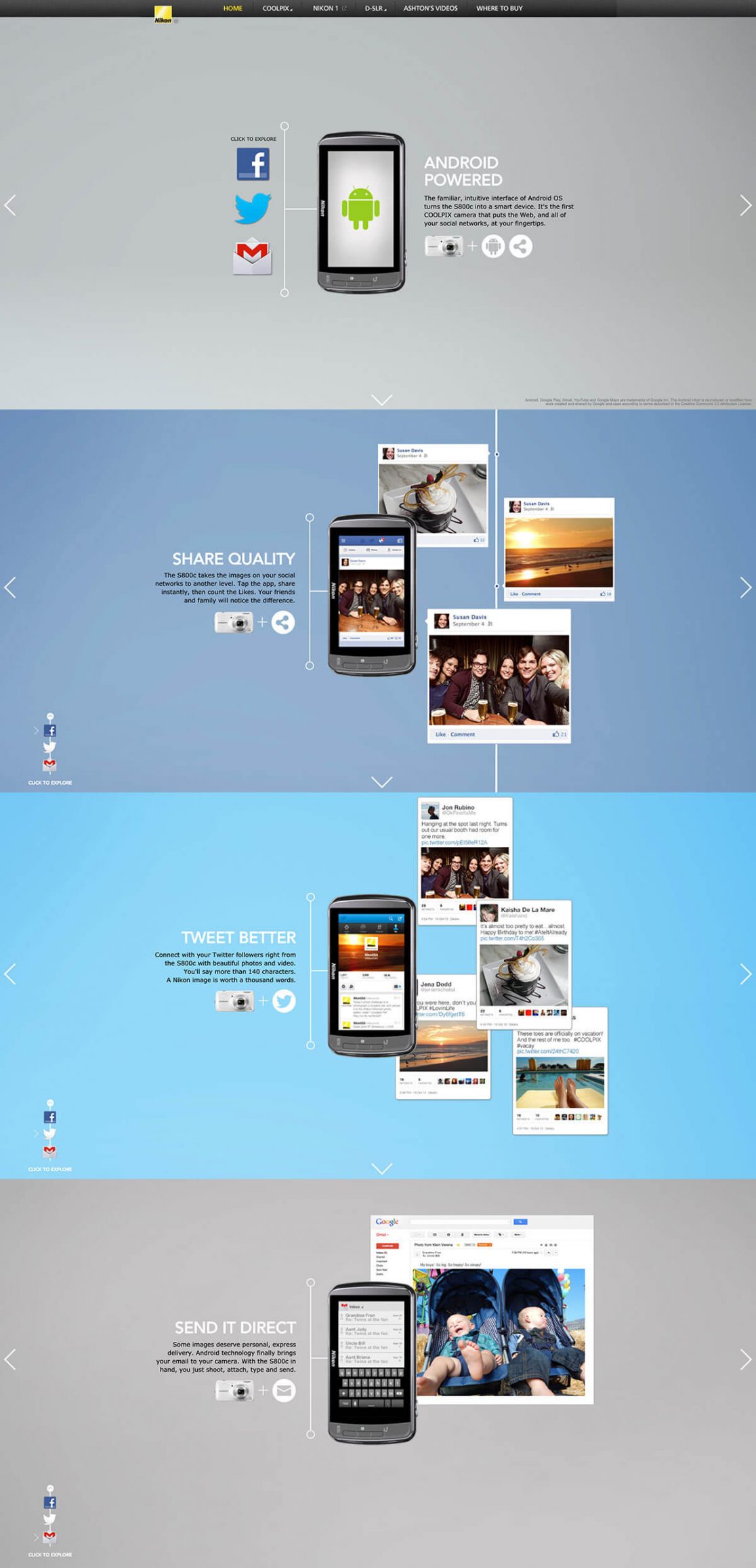The first Android-powered touchscreen digital camera needed an online experience that would showcase its unique design and features through the lens of desktop and tablet browsers. Tasked with this incredibly fun project, we created a single page application to deliver a seamless user experience by building a custom javascript framework to structure the scenes, 3D model transitions and touch controls for tablets. The result was just as fun – we brought the creative directors’ dreams to reality with a rotating 3D camera model, sliding interactive scenes, and a full functioning fruit ninja game.